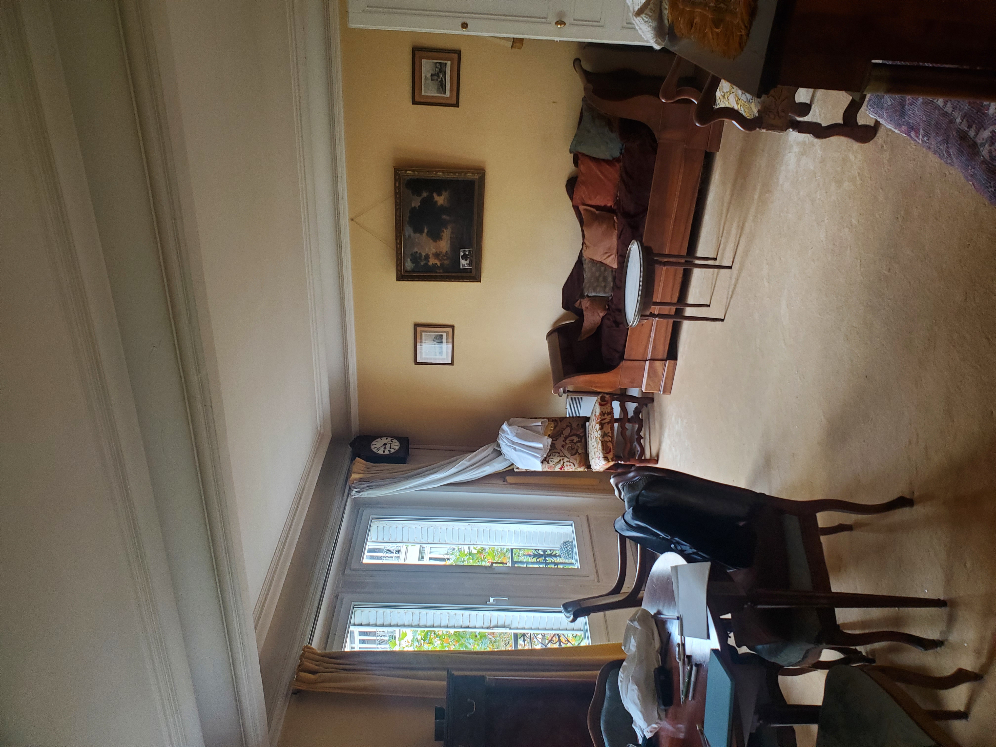 TV escamotable et bibliothèque depuis le séjour, réfrigérateur et niche